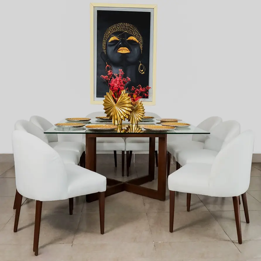 Un diseño que destaca por su armonía entre líneas modernas y detalles atemporales. Este comedor aporta amplitud, sofisticación y equilibrio visual a cualquier espacio, convirtiéndose en el punto focal de tu hogar.